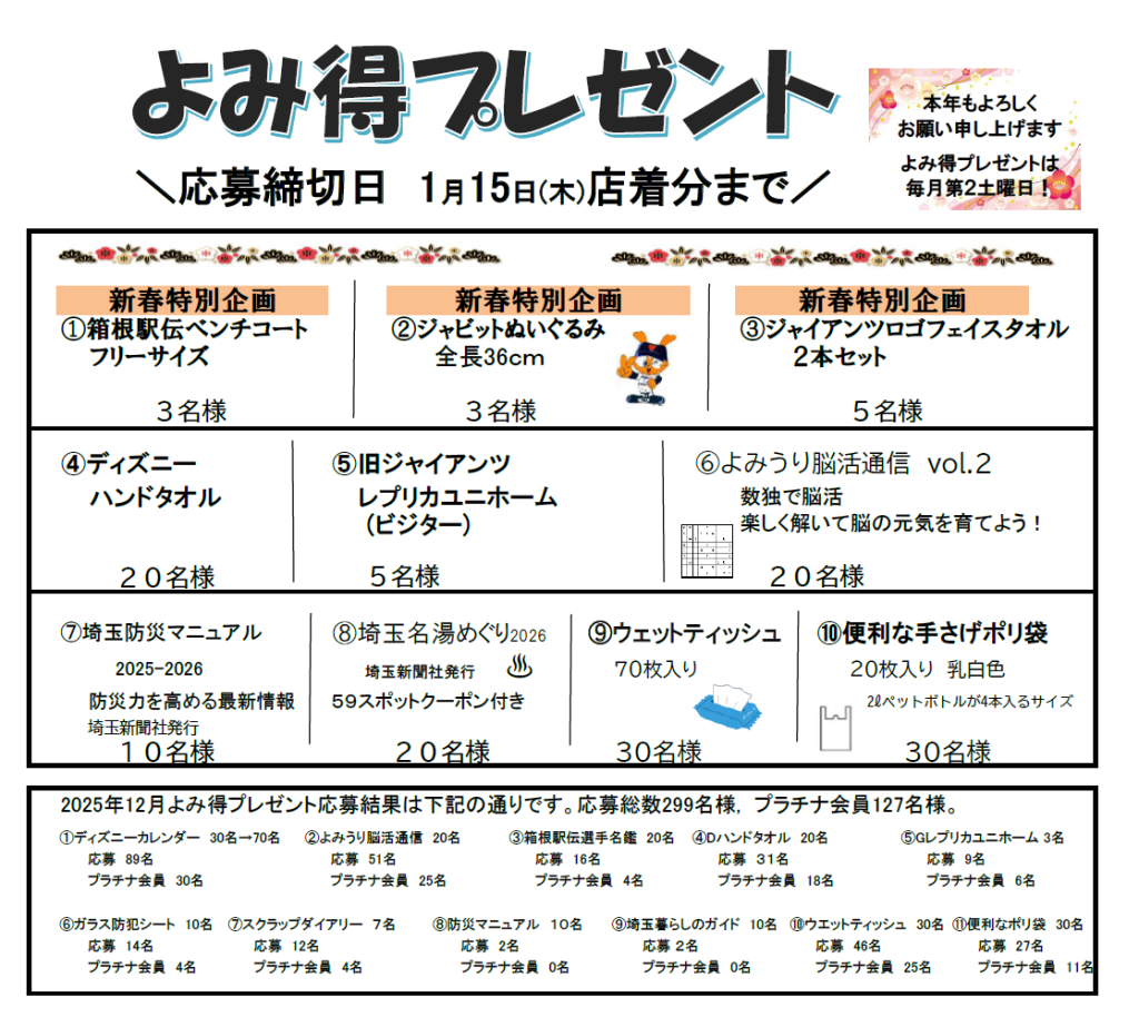 毎月たくさんのご購読者様にご応募いただきありがとうございます。